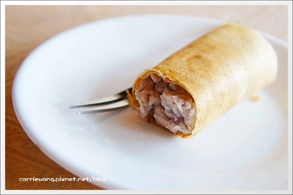 不過芋頭捲好好吃哦!芋頭不是很細緻的泥狀,還可以吃的到芋頭的顆粒,而且香氣十足,捲餅也很酥,這道有讚!