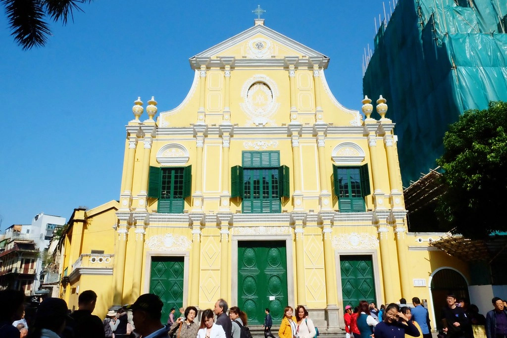 玫瑰聖母堂又稱板樟堂,創建於1587年, 擁有400年歷史,黃色巴洛克風格建築非常的亮眼。
