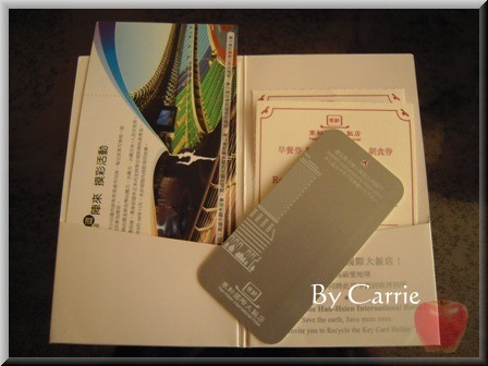 !在Check-in完之後,我們拿到了房卡和早餐卷…並且麻煩櫃台人員如果地下室停車場有停車位的時候馬上告訴我們…