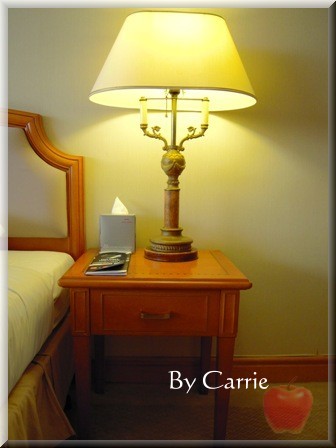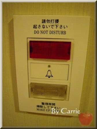 這個很特別哦!一般飯店是提供一張卡”Do Not Disturb“有需要的話掛在門把上,但是寒軒的是按鈕式的,按了燈就會亮了