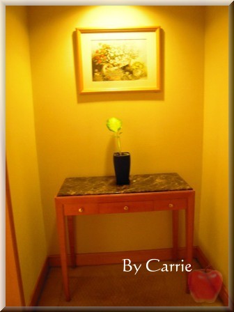 它的房間隔局比較特別,打開門是玄關,左轉後才是房間…