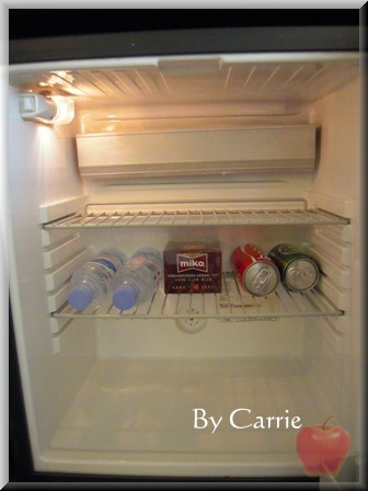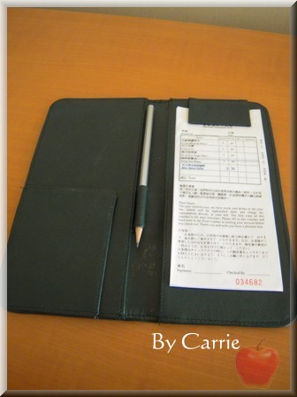 櫃子上一樣放了一張Mini Bar & Fridge Charge Slip.