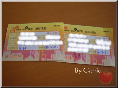 高雄市政府在市運會期間有送摸彩券,我和Kevin填完後隔天Check-out時拿給櫃台,希望可以中獎啊!
