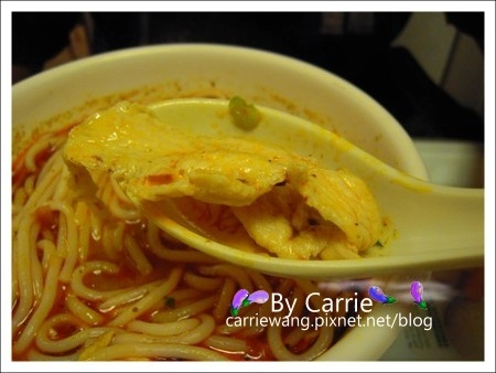 但是咧!這碗看起來不怎樣,卻是辣到Kevin臉上的汗沒停過,他一邊吃一邊說他快噴火了,叫我不要吃了…