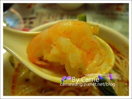 冬蔭功海蝦球麵線 – HK $33,冬蔭功就是泰國名菜TOM YAM GONG啦!這湯頭喝起來也確實很有泰味…