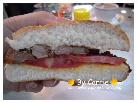 漢堡包外酥內軟,可是我覺得肉有彈性又好吃吶!我這才知道什麼叫”彈牙”…