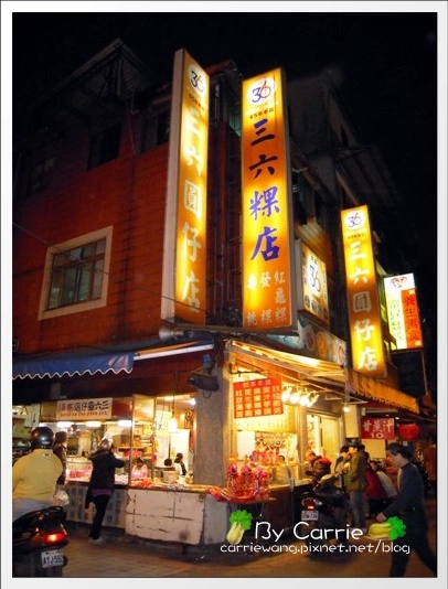 走出《華西街夜市》最熱鬧的區域,我們來到捷運店旁的《三六圓仔店》,旁邊是《三六粿店》,應該是同一個老板吧!拒聞此店已傳襲三代,經營了70個年頭了哦!