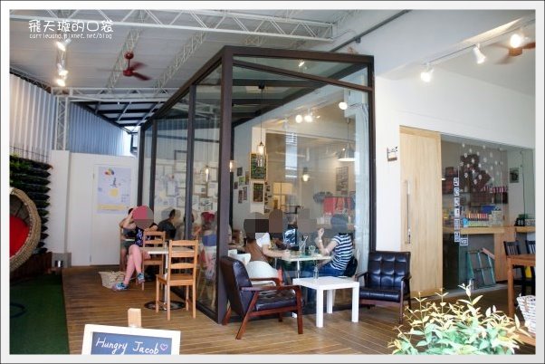 《愛吃借口漢堡店》位於昇平街,好像離《波魯克劇場》還滿近的…門口這兩個搖搖椅很具代表性!庭院空間也不小,可以溜小孩…