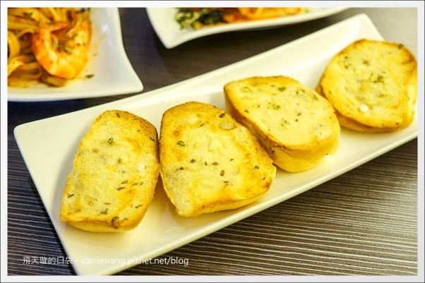 麵包上面塗了一層薄薄的香蒜醬,口感外酥內軟有香氣…我們都還滿喜歡的!