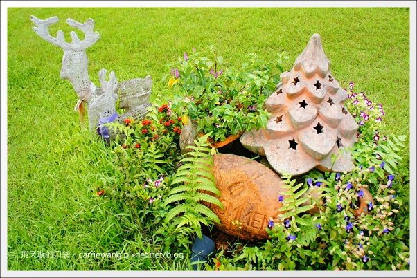 院子裡好多花花草草,草叢裡又藏了好多卡通人物,仿佛走進了童話世界一樣…(我們是誤入森林的老白兔?