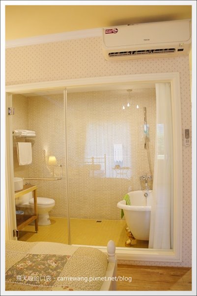 兩人房的浴室是這種透明玻璃型的,雖然可以把窗簾拉起來,但如果不是夫妻或情侶同住的話可能會有點小尷尬…