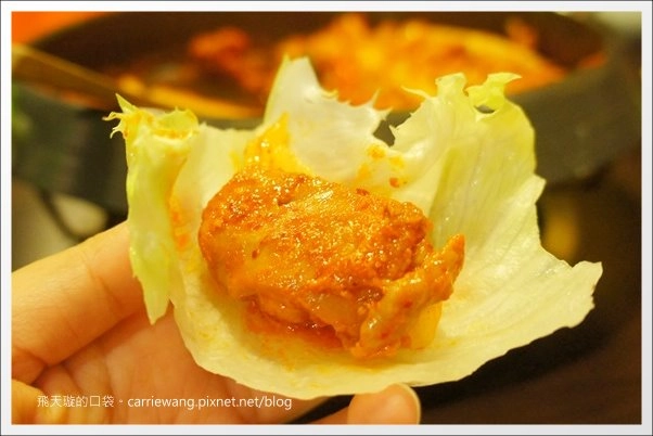 雞肉軟軟QQ的,很好吃呢!(可惜青菜不是在韓國吃到的那種紫蘇葉…