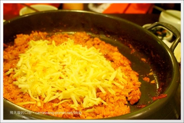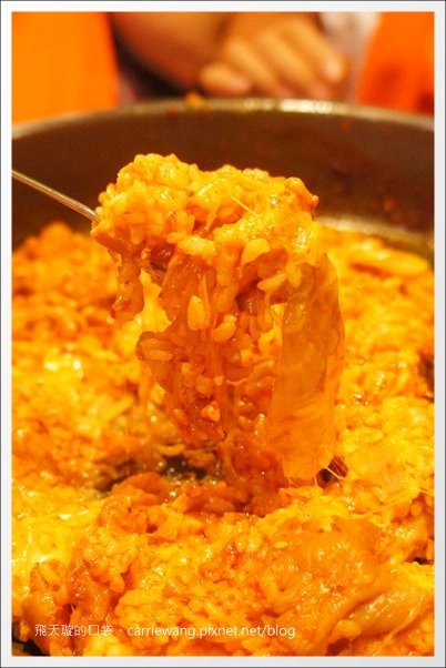 接著把沒吃完的辣雞加入起司和白飯…