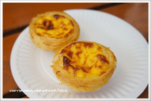 蛋塔的皮很酥,裡面的奶香味很足,熱熱的吃很好吃!(我媽媽說不能放太噁心的照片在自已的格子上,所以我不敢拍斷面秀…