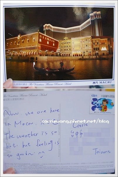 我們特地挑了一張《威尼斯人酒店》的封面,3天左右就收到明信片了!