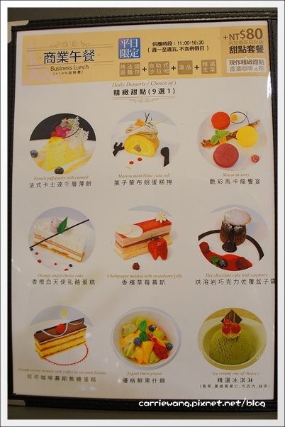 除了排餐之外,甜點似乎也是主打,這天看到很多”貴婦”在裡面喝下午茶呢!