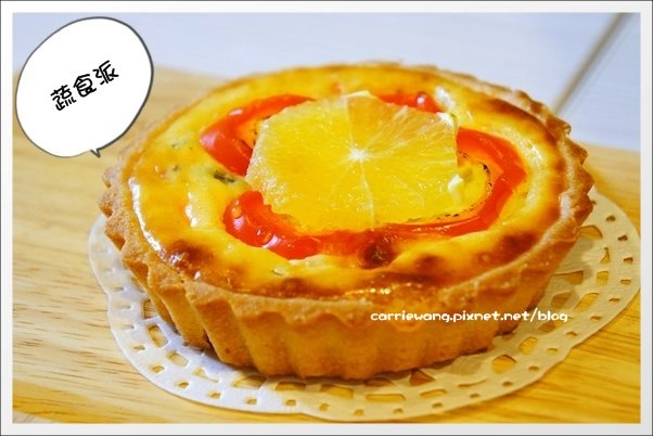 蔬食派 – $110元,表層有紅色的甜椒點綴,而且還有一片橙片,吃起來鹹中帶甜,算是這天口味最跳的一道了…