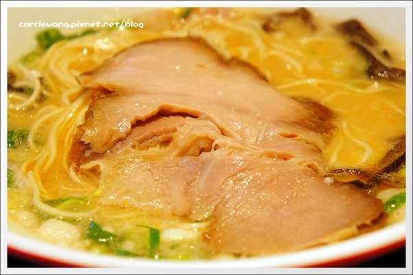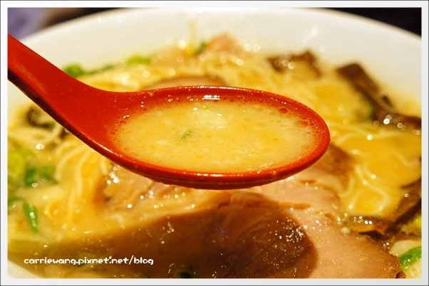 湯頭是經過長時間熬煮的,可以看的到湯頭裡有豬背脂,所以感覺比較油膩一些…喝起來很濃郁,但是又很溫和順口不死鹹!
