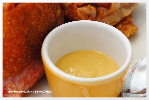 搭配的應該是…芥茉醬…吧?不過單吃就很好吃了捏…