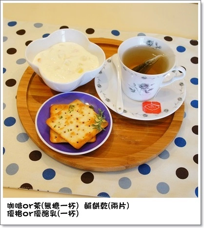 早餐的主食竟然只有一片餅乾?(←突然很後悔自已買這牌的鹹餅乾,也太薄了吧?)
