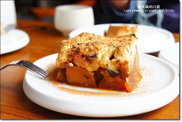 英式蘋果派 – $100元,底層是燉煮過的蘋果,蘋果不會過於軟爛,還保有點脆脆的口感,甜度拿捏的很適中…上層是烤過的奶酥,酥酥脆脆的帶點奶香,表面還灑上適量的肉桂粉,冰涼的蘋果搭配著熱熱的奶酥一起入口,有冰火交融的衝突感,但是卻非常的美味,整體的味道是非常有厚度,這道我和小玉都很喜歡…