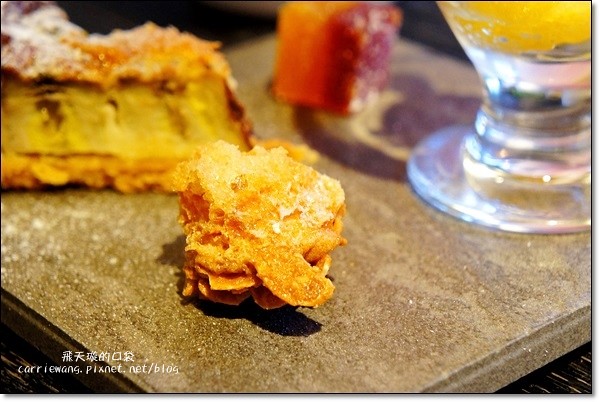 只能說這口感真是太迷人了,顛覆我對一般千層派的印象,上面有一層薄薄的糖衣(應該是糖衣吧?)。