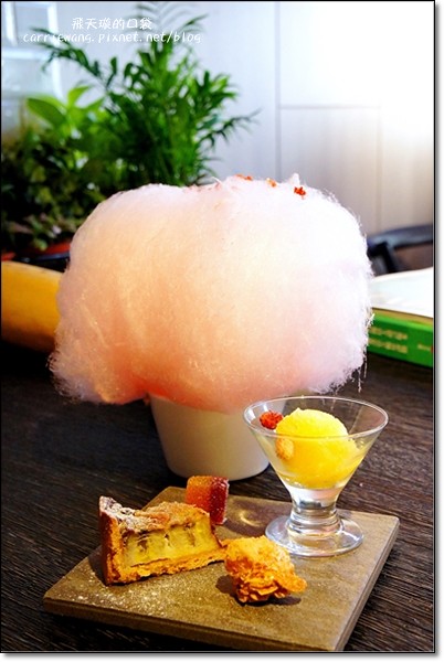 淡粉色的棉花糖灑上些莓果乾和金泊(←以上可能是我做夢夢到的),很簡單的兒時零嘴竟然搖身一變成為法式甜點…