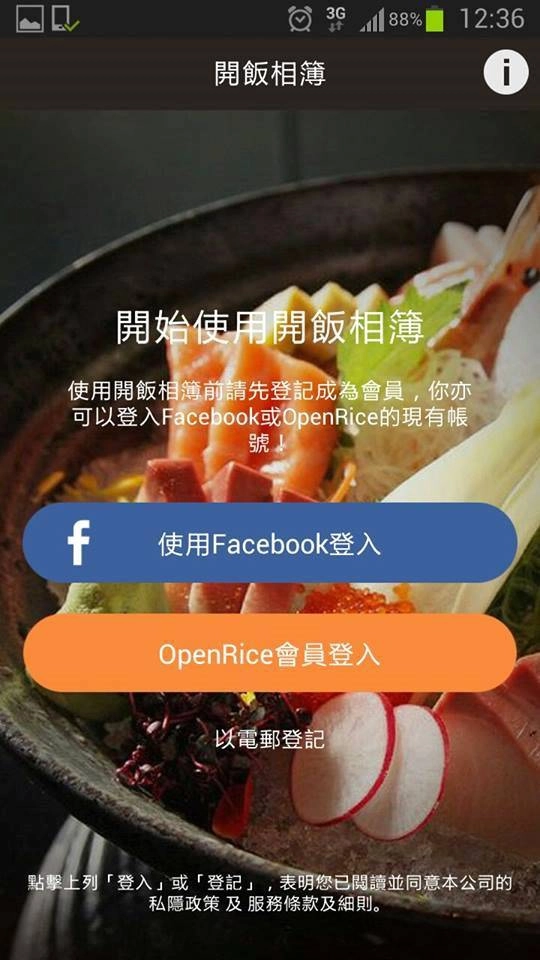 如果你是第一次使用《OpenSnap.開飯相簿》的話,那需要先註冊,或者直接連接Facebook帳號會比較方便一點…