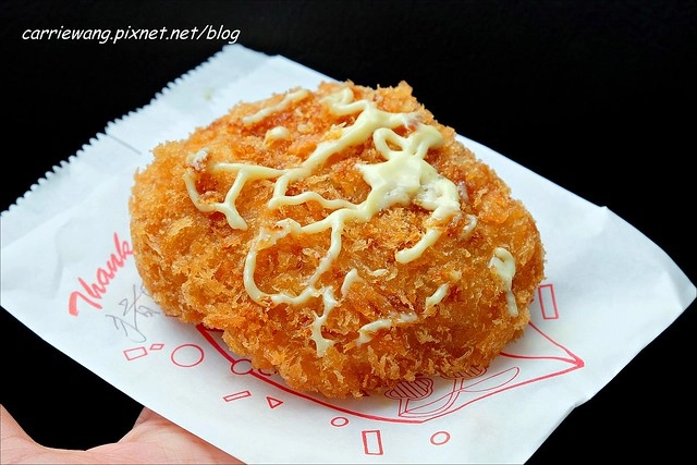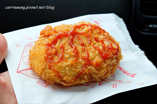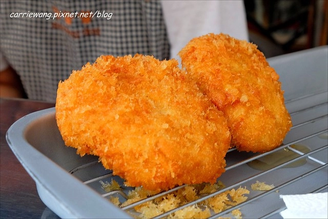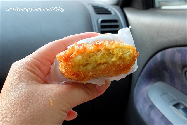 咖哩可樂餅 – $30元,外表炸的金黃酥脆,然後~非常燙手!