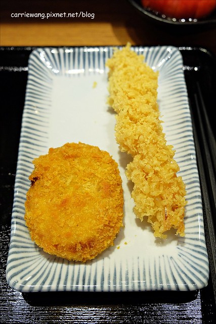 現炸大蝦 + 原味可樂餅 – $70元 + $40元 = $110元,可樂餅還可以,蝦子有點營養不良…