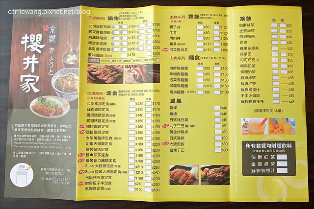 這間《櫻井家》似乎是很老字號的餐廳了,查詢了一下,網路上的食記多半推他們家的定食,因為很便宜,而且份量又大…不過火鍋和壽喜燒類好像也挺不錯的,如果家庭or朋友聚餐可以選擇這種複合式餐廳,每個人都可以選擇自已喜歡的餐點,又不用花很多錢就可以得到滿足哦!