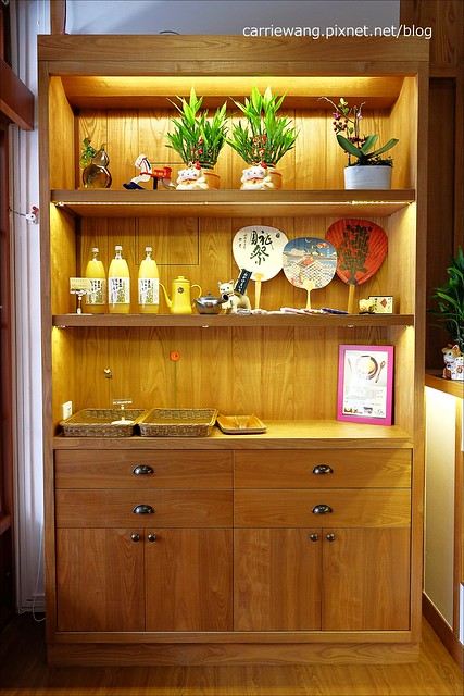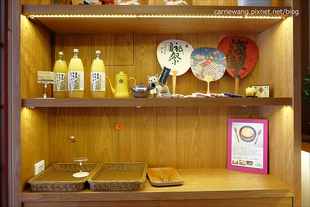櫃子裡擺放了一些簡單的展示品,還有青森蘋果汁外賣,這款很好喝哦!我自已三不五時都會到《凱福登》補貨,放一些在冰箱裡…