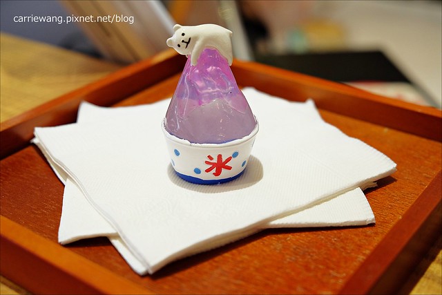 繽紛莓果日式刨冰 – $60元,旁邊還附一小盤果糖,莓果醬給的很大方,可能是用木製托盤盛裝的關係,整體感覺很有質感…