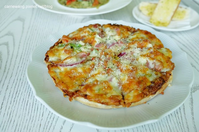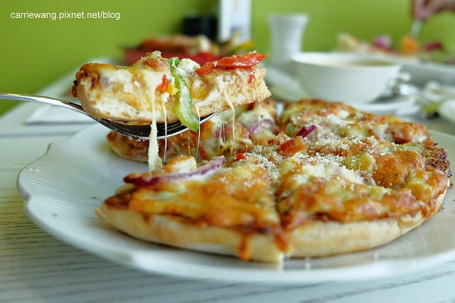 披薩的餅皮也是使用”小時候大餅”哦!我個人還滿喜歡這樣的口感的,吃起來軟軟QQ的,而且多了一些麵香氣…