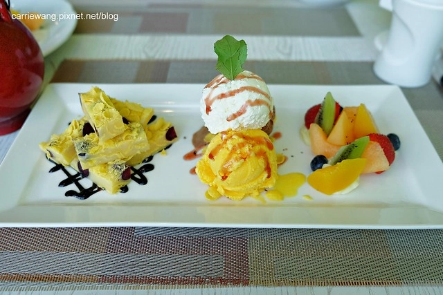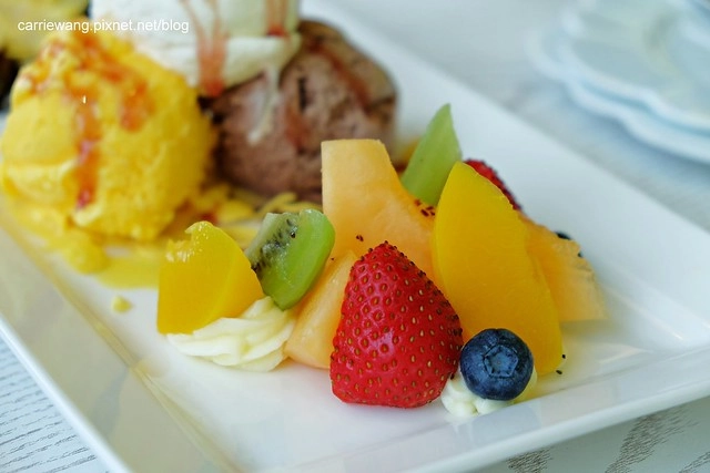 除了中間三球冰淇淋之外,旁邊也是搭配新鮮水果和奶油…