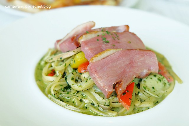 煙燻鴨胸青醬燻雞義大利麵 – 點餐的時候特別交代麵條要硬一點,但是心中還是擔心店家不知道能不能把麵條處理成我要的口感…