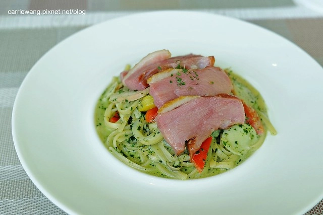 麵條處理的很好,偏硬還保有麵芯,口感吃起來很Q彈,而且醬汁也有入味,青醬的部份顏色很天然,一看就知道不是用粉調的…XD