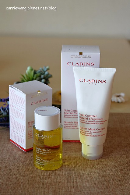 滿12W時,趁著去逛百貨公司的時候,我就順便去克蘭詩專櫃買了除紋乳液和除紋油,當時好像有特價,兩瓶乳液+一瓶油= $5,000多元…(多到多少就別問了,我真的忘了!