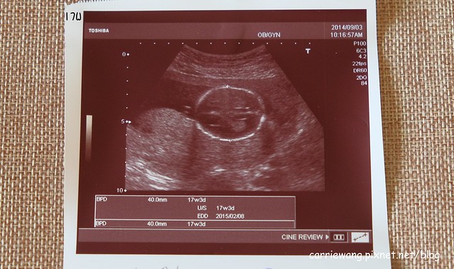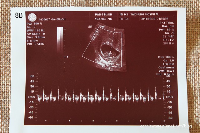 醫生幫我安排12W做第一次正式產檢,當天照的超音波圖來看,小baby的身形已經相當明顯了,但是因為趴睡,所以看不到他的重要部位…(裝什麼矜持?