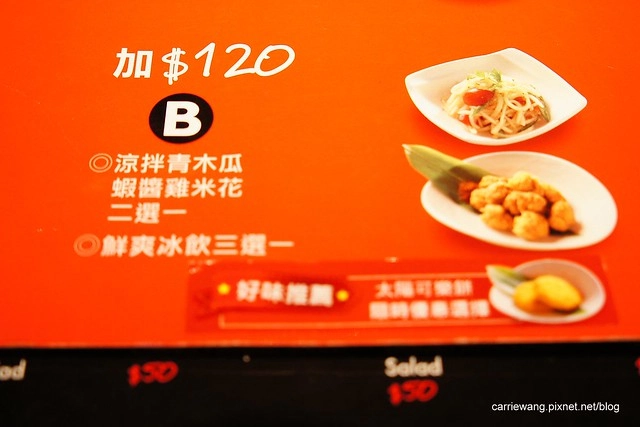 加 $120元的話,可以升級為B套餐,好像可以再多點一道小菜的樣子…(我真的忘了!><“)