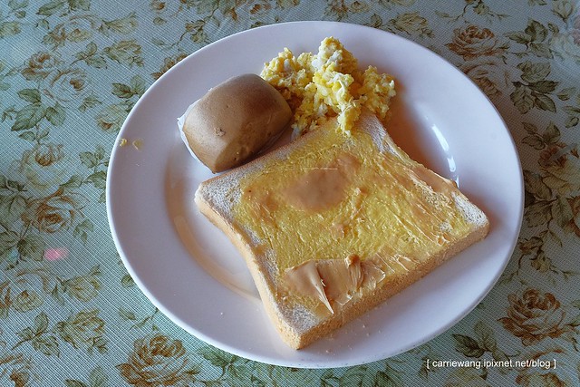 某人只要眼睛一睜開就會肚子餓,真是奇怪了,拼命催我要吃早餐了…所以我們就走到前一晚用餐的地方!