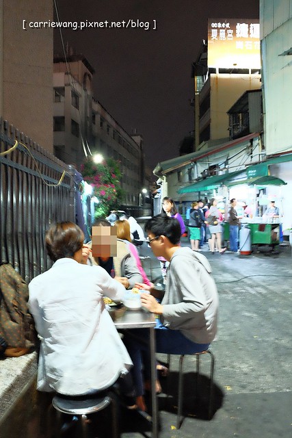 用餐有兩個區域,一邊是北屯國小圍牆旁,另一邊就是地下道旁…我們這天8點多到,稍微等了一下才有位子…