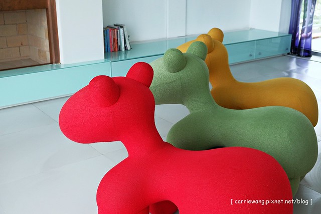 公共區域除了是用餐的地方之外,還有一座圓形的沙發,櫃子上還有書籍以及DVD可以借…(對了!還有3D眼鏡可以借來看電影哦!)