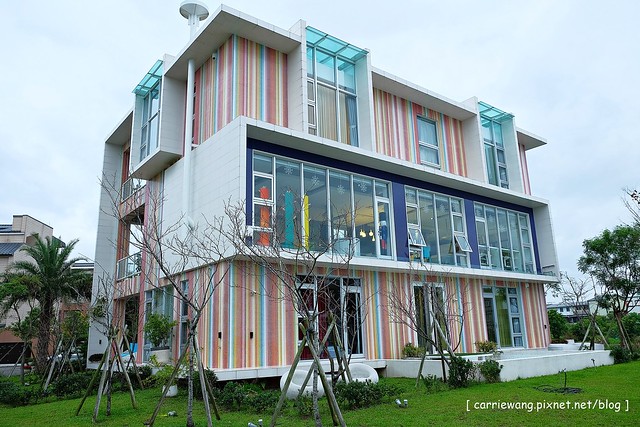 民宿前方有一大片停車場,停好車後映入眼簾的是充滿現代感的一棟樓房,顏色七彩繽紛的,好亮眼呀!