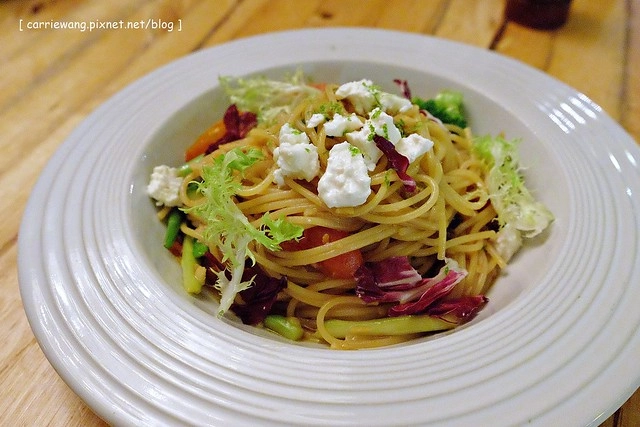 因為Feta羊奶起司的關係,所以會有一種濃郁又帶點酸的奶味,這一道應該是要看人吃,我個人是滿喜歡的,因為青菜很清爽,加上濃郁的起司提味,口味比較有層次感,而且麵條是偏硬帶有麵芯的,吃起來還滿紮實的…