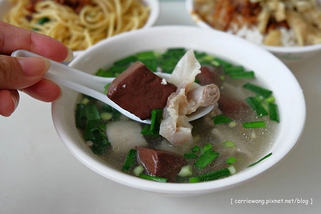 這一碗有豬血、小腸和韭菜(好像還有其他豬雜類…),可說是滿滿的好料…