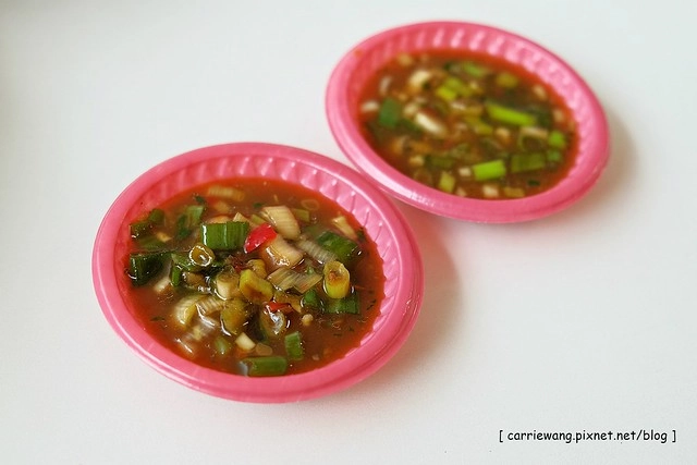 聽說這個店家自製的辣椒醬是一絕,也是店家的特色,裡面應該是蔥、蒜、韭菜和辣椒吧!?