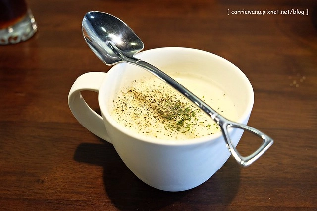 濃湯 – 湯匙很Q吧?我都想買一支回家了!濃湯的料沒有想像中的多,而且湯品不夠熱,有點可惜…