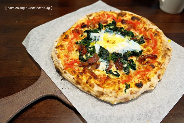 佛羅提那披薩 – $219元,這道披薩是服務人員推薦的,本來想說兩個人點兩道就好,但是覺得《義樓》的披薩賣相還挺不錯的,而且價格也不算貴,再加上本人腦波極弱,身邊朋友又無法阻止,所以~所以~所以~所以~所以就點了啦!