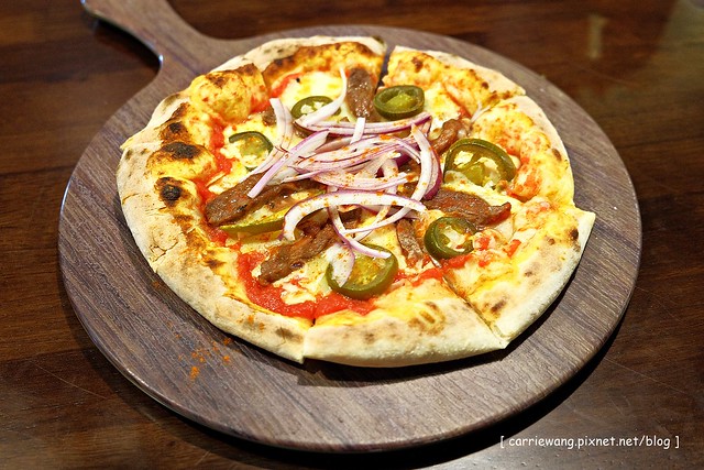 魔鬼傑克牛排披薩 – $229元,看到這道有點傻眼,因為無論是它上面的料,還是它的尺寸,都和menu有不一樣…